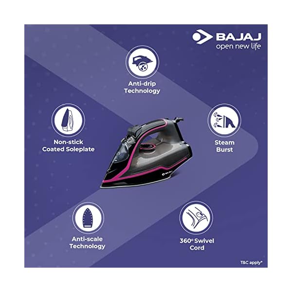 Bajaj MX-35N 2000W Steam Iron with Steam Burst, Anti-Drip and Anti-Scale Technology, Vertical and Horizontal Ironing…