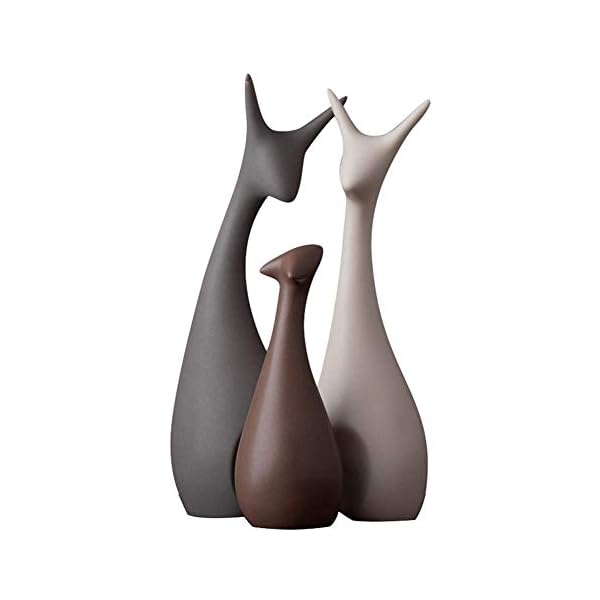 Xtore® Home Decor Lucky Deer Family Matte Finish Ceramic Figures – (Set of 3, Matte Brown)